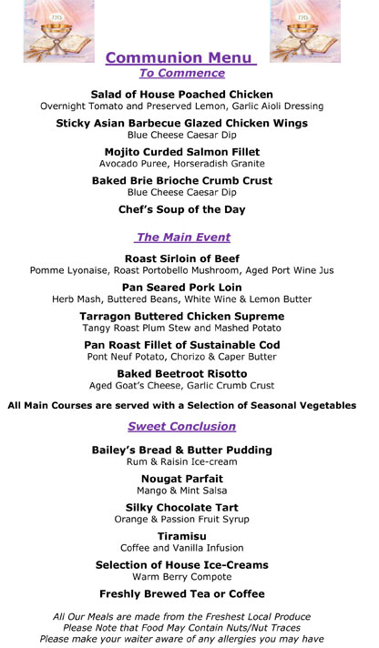 View The Park Restaurant Communion Menu